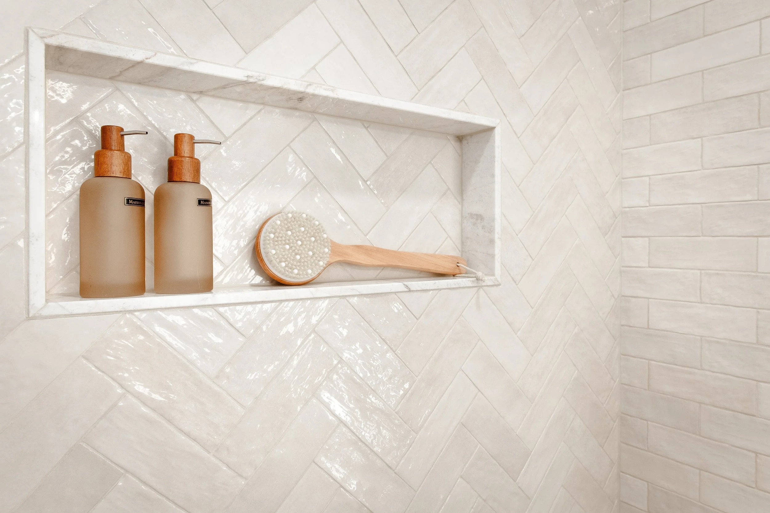The handcrafted tile look continues to grow in popularity. Zellige tiles - glossy, uneven, and full of character - are a favorite for backsplashes and accent walls. They bring charm, texture, and authenticity to any bathroom design.
