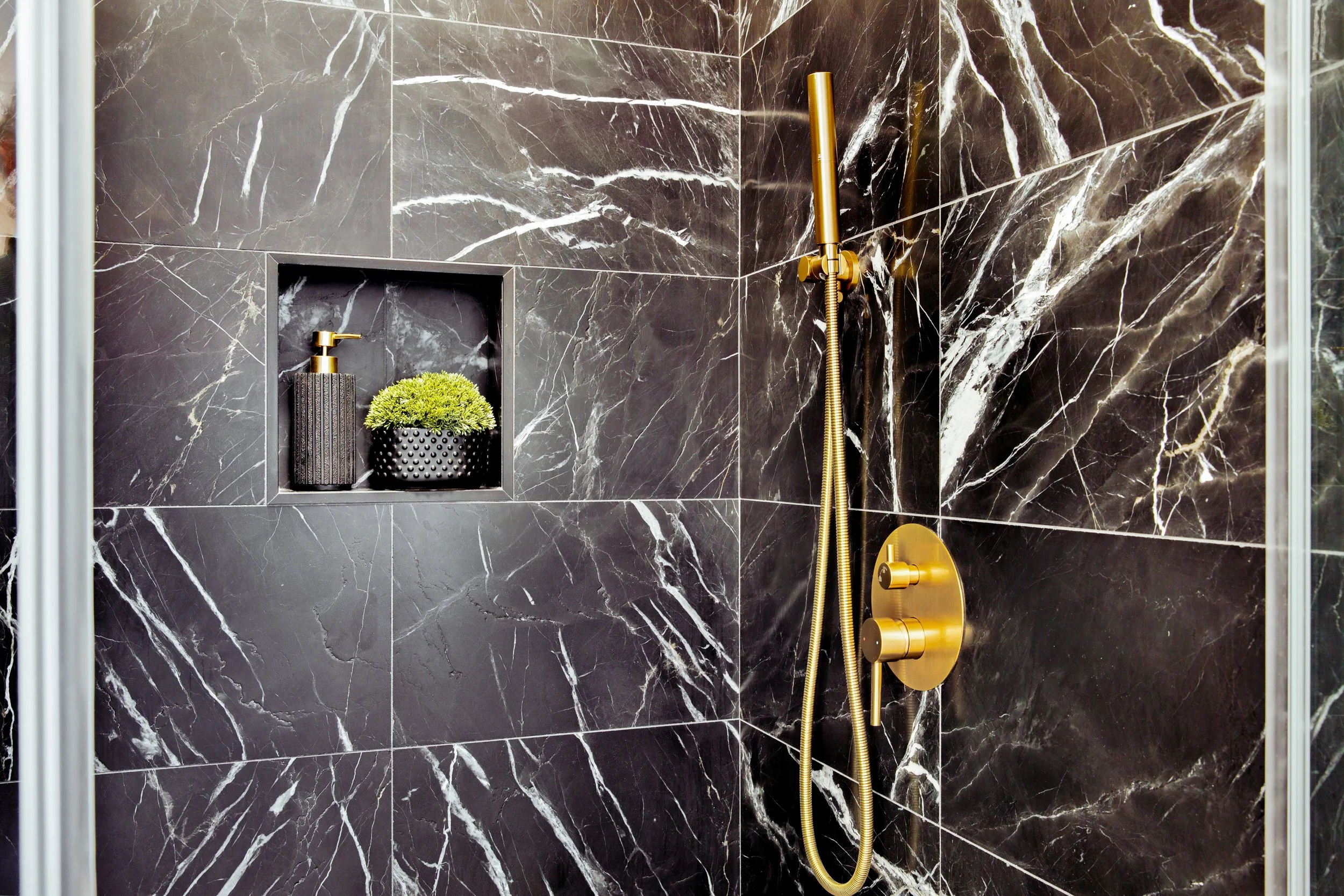 For those who love a touch of luxury, metallic tiles in bronze, copper, or champagne add shimmer and depth. Use them in small doses - like borders, shower niches, or vanity backsplashes - for a high-end designer feel.