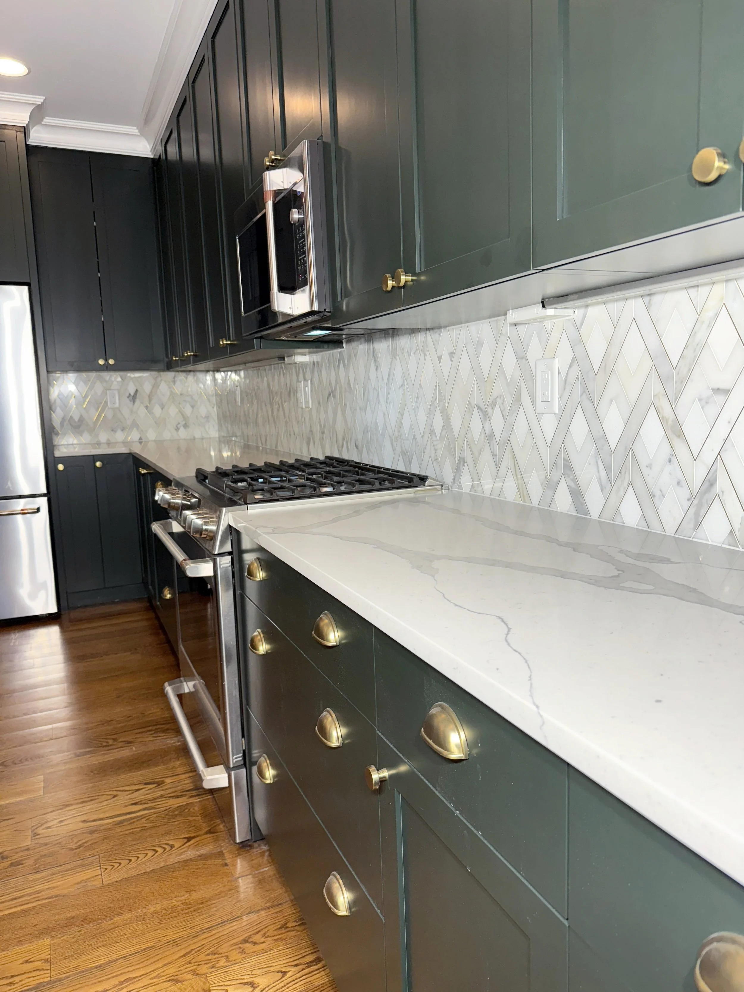 When a previous client in Haverford, PA reached out for help modernizing their kitchen, we knew exactly how to bring their vision to life - with timeless marble, contemporary brass accents, and precision tilework that blends function with flair.